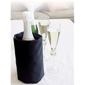 ? Luxury Black Microfiber goes with any decor and looks fantastic.? Great for BYOB restaurants and dinner parties. ? Great for chilling down bottles and keeping them ice cold. ? Built-in insulation eliminates condensation on outside of bottle preventing dripping and mess. ? Fits 0.5 liter to 2 liter bottles - Flexible with frozen.ost 750ml wine, champagne bottles. ? Simply insert ice mat into microfiber sleeve and store flat in freezer, ready to use anytime. ? Less bulky and easier to use than ice buckets - Ice without the mess!? ? Contains purified water.